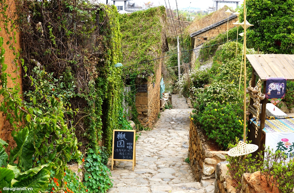 - Phương Dương Áp Thôn cách thành cổ Đại Lý 7km, ngôi làng xinh đẹp, bình yên nằm dưới chân núi Thương Sơn, những ngôi nhà trong làng được bảo tồn cổ kính như trong phim “Đi đến nơi có gió”.
