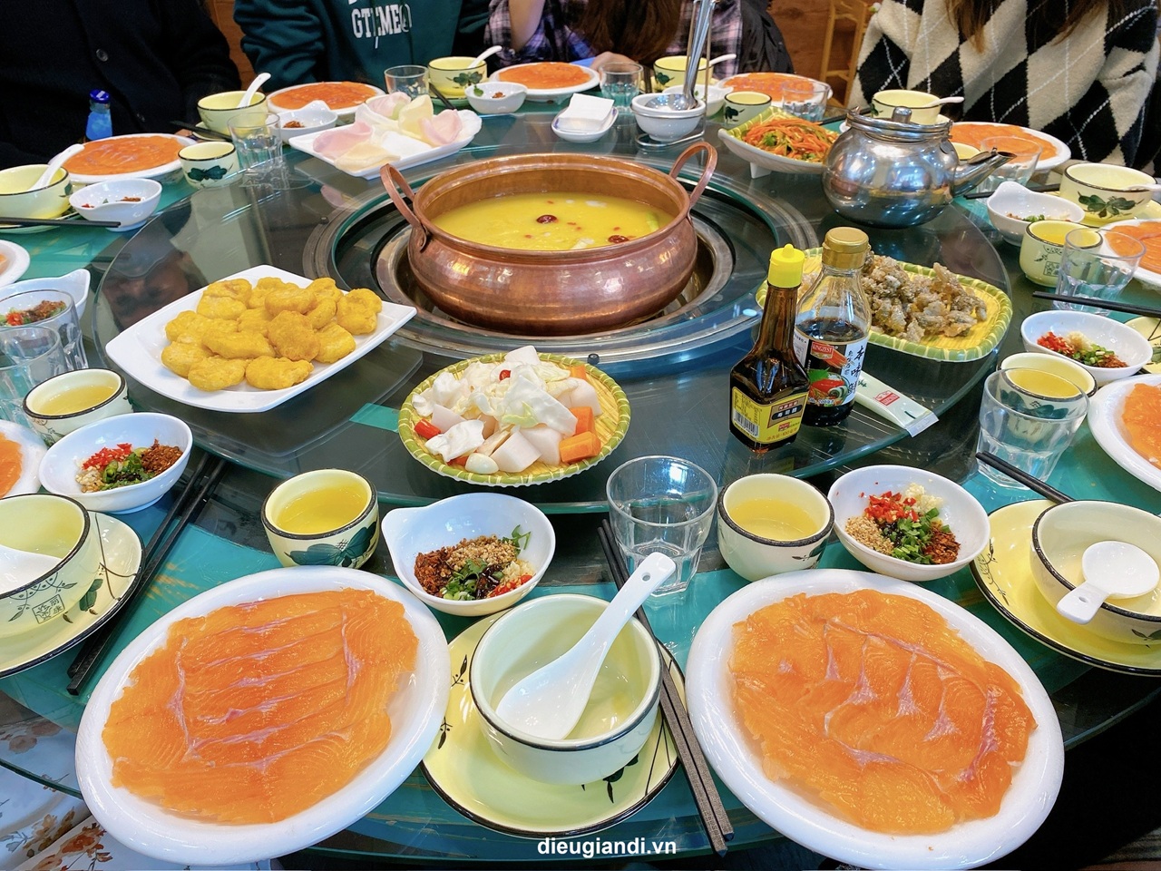 - Ăn tối lẩu cá hồi. Nghỉ đêm tại thành cổ Thúc Hà.
